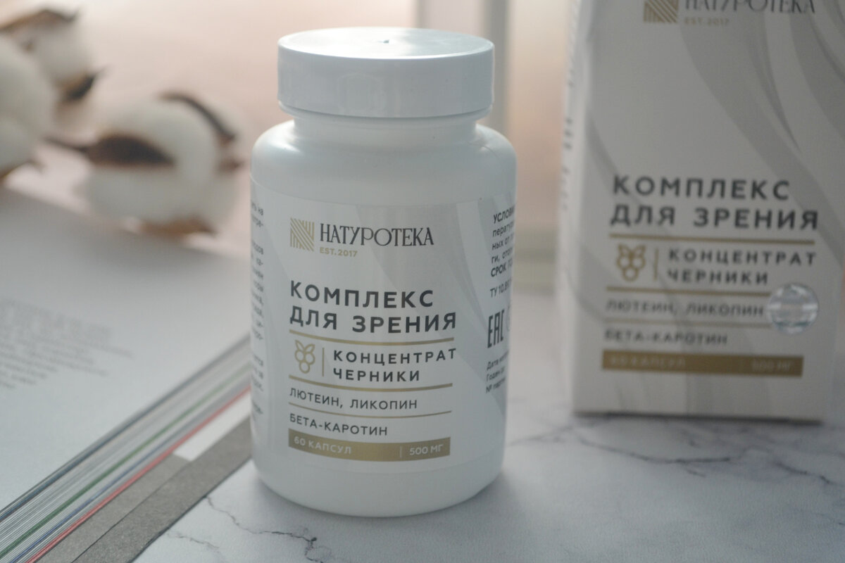 Всем привет, с вами автор канала Даша. Лет в 18 я вообще не задумывалась о приеме разных витаминок и добавок. Но сейчас, в 26 лет все же нужна какая-то помощь организму. И сегодня я расскажу вам про 2 средства, которые я сейчас пью на регулярной основе. Сразу хочу отметить, что перед приемом любых витаминов, БАДов или добавок проконсультируйтесь с врачом. Не стоит принимать витамины просто так без показаний. БАД Naturoteka Комплекс для зрения Концентрат черники У меня плохое зрение с детства, и врачи всегда советовали пропивать курсами витамины для глаз. Я последние годы так и делаю, но не постоянно. Раз в полгода, примерно. В этот раз мой выбор пал на комплекс от Naturoteka. Брала я его на WildBerries за 450 рублей, цена скачет, но больше 500 ни разу не видела. Всего 60 капсул, они небольшого размера и легко глотаются. Применять нужно в течение 30 дней, 2 раза в день до еды. Упаковки хватает как раз на курс. Я много работаю за компьютером, глаза могут уставать, и с началом кур