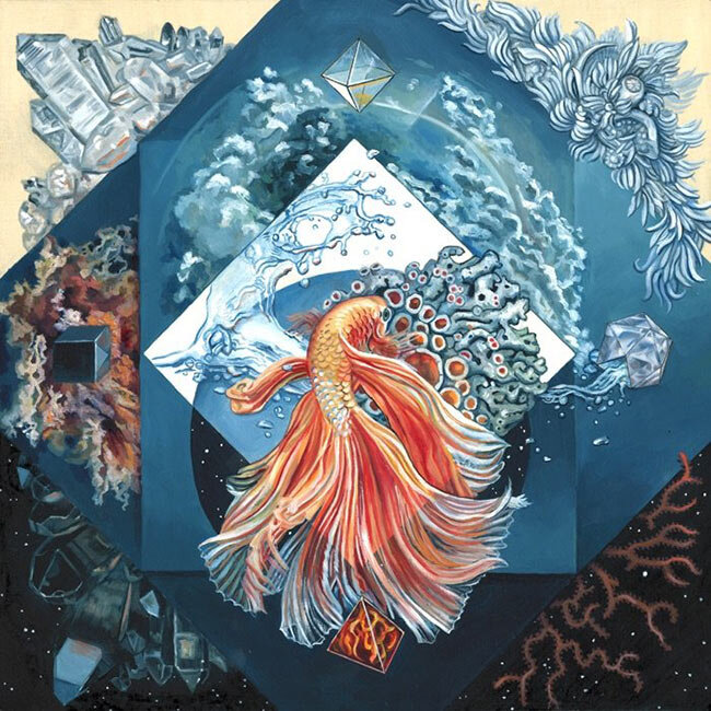 Мишель Андерст / Michelle Anderst — прекрасный художник и научный иллюстратор из Сиэтла, чьи картины биологических структур служат как произведениями искусства, так и эстетическими заявлениями об экологическом сознании в современном мире. Используя сакральную геометрию, яркие цвета и органические предметы, такие как пчелы, грибы и кораллы, Андерст создает уникальные микрокосмы большого природного мира, иллюстрируя взаимозависимость всех живых существ, какими бы маленькими они ни казались или отдаленно связанными. Многие из её картин вращаются вокруг исследования коллективного разума и различных способов совместного творчества людей и животных в тонком танце внутренней и внешней эволюции. «Черпая значительное количество вдохновения из экосистемы, нельзя избежать проблемы устойчивости. Эта тема, в частности, играет важную роль в моем интересе к той роли, которую грибы играют в природе. Я постоянно собираю информацию о микроклимате и содержащихся в нем специализированных видах, которые не