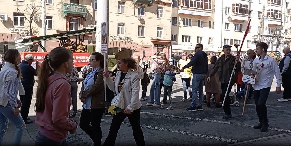 Давно не ходила на празднования 9 мая в публичные места. А в этом году захотелось это сделать, после ковидных перерывов, в качестве поддержки нашей страны в ситуации беспрецедентного давления на нас, граждан России. Народ стал заметно уплотняться на улице ещё задолго до центральной площади. Шли люди в возрасте, шли молодые, шли с детьми. Шли люди с георгиевскими лентами и портретами своих воевавших и работавших в тылу предков. На проезжей части стояла готовая к параду военная и гражданская техника. Прошла по площади парадным строем техника, промаршировали молоденькие курсанты и юнармейцы, пронесли штандарты военных частей, формировавшихся в нашем регионе. И вот выстроились ряды Бессмертного полка, марша которого ждали два года. И они пошли. Они шли и шли. Текли и текли. Течет река бессмертного полка По улицам, проспектам, по стране. Шагают в ряд с портретами в руках Потомки победителей в войне. И знаете, что произошло? Когда на площадь вступил Бессмертный полк, люди вокруг замолчали. П