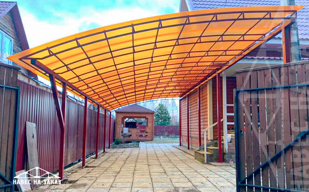 В одной из прошлых статей мы рассказали о лучших материалах для кровли навеса. У всех материалов есть как достоинства, например, высокая прочность, внешний вид, большой срок эксплуатации так и недостатки, в виде ограничений к использованию или высокой цены. Этой статьёй компания «Навес на Заказ» хочет помочь вам с выбором материала под бюджет, окружающие условия и ваши пожелания к дизайну. Мы разберём виды навесов и особенности использования на них разных материалов. Начнём с навесов, примыкающих к дому. Это один из самых сложных случаев в плане условий использования того или иного материала. В первую очередь стоит обратить внимание на окна постройки, выходящие под навес. Дело в том, что примыкающий навес будет препятствовать попаданию в помещение солнечного света. Это может вызвать дискомфорт, поэтому советуем заранее учитывать этот нюанс. Если навес закрывает окна спальной комнаты, где вам не нужен яркий дневной свет, или это теневая сторона, где вам привычно и комфортно использоват