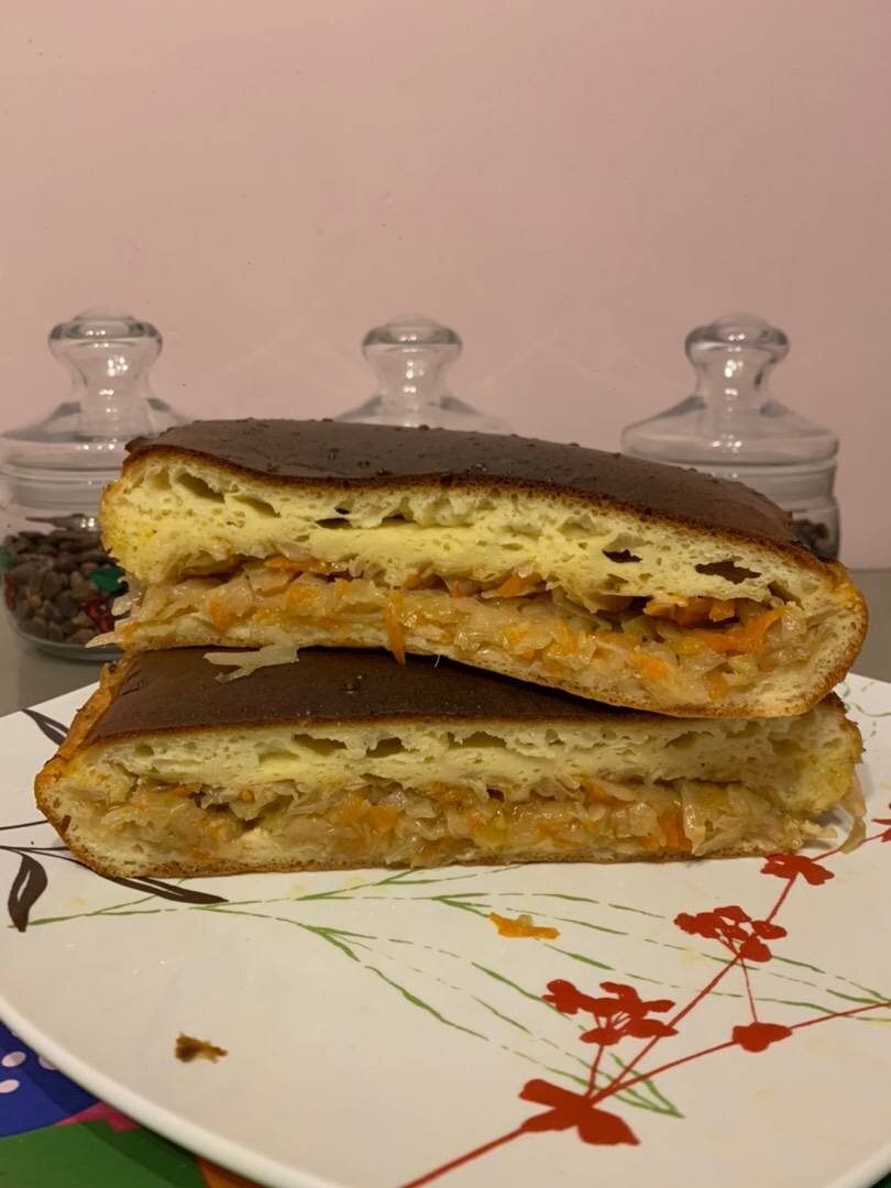 Ингредиенты: Капуста , Сметана , Морковь , Лук , Куриное яйцо среднего размера, Мука пшеничная , Разрыхлитель теста , Масло растительное для жарки 🥄, Соль Способ приготовления: В начале приготовим начинку, нарежем лук, натрем морковь, отправляем на сковороду обжариваем на среднем огне, нарежем капусту не крупно, добавим соль перетрем руками чтоб дала сок и стала мягче, добавим к луку и моркови, тушим на среднем огне под крышкой до готовности периодически помешивая. Готовим тесто ! В миску выложить сметану, яйца, соль по вкусу, перемешать венчиком до однородной массы, просеять муку с разрыхлителем, добавим в яично сметанную смесь, перемешать до однородной массы. Берём форму смазываем маслом, на дно формы выливаем тесто меньше половины, выкладываем начинку и заливаем оставшимся тестом равномерно распределяем, отправляем в разогретую духовку при 180 градусов на 35-40 минут.