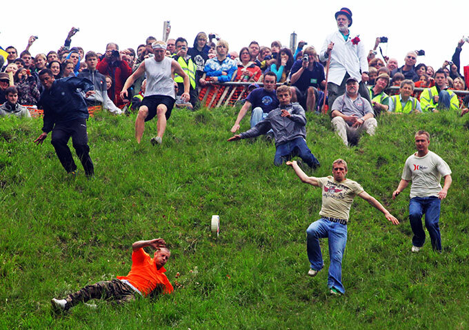 Фестиваль сырных гонок - забавное соревнование в небольшом графстве в Англии. Фестиваль забега за сыром проходит в Куперс-Хилл, графство Глостершир, Англия. Традиционно это мероприятие проводили жители деревни Брокворт, и в конечном итоге оно стало крупным событием, в котором принимают участие тысячи туристов со всего мира. В 2013 году, доказав его глобальный характер, американец и японец выиграли две гонки фестиваля. Так как фестиваль проходит на вершине Куперс-Хилл, фестиваль называется “Куперсхиллская сырная гонка". С чего все началось. Этот праздник был языческим обычаем. В те давние дни жители деревни сбрасывали с холма горящие дрова, чтобы отпраздновать наступление нового года. Глава деревни на церемонии обычно разбрасывал сладости на вершине холма в начале этого мероприятия. В то время как немногие участвовали в мероприятиях, тысячи приходили посмотреть. После того, как 15 человек получили травмы во время фестиваля в 1993 году, местный совет выступил с инициативой и попытался