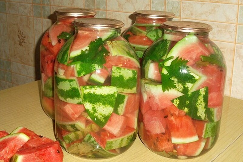 Закаточная машинка Банки 3-литровые - 2 шт. Крышки - 2 шт. Разделочная доска Сода Арбуз помыть, разрезать на кусочки. Помыть с содой банку. Уложить в банки кусочки арбуза.