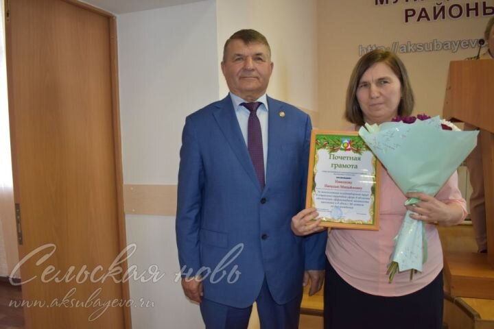По завершению заседания Совета района состоялась церемония награждения отличившихся работников отраслей. За многолетний плодотворный труд в социально – трудовой сфере в области обеспечения эффективной занятости населения и в связи с 50-летием со дня рождения Почетной Грамоты главы Аксубаевского района и букета цветов удостоилась ведущий инспектор ГКУ «Центр занятости населения Аксубаевского района» Наталья Никонова.