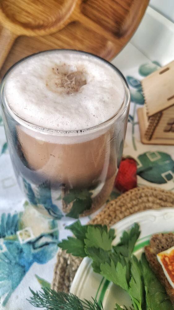 #готовимвместе #можновсё #домавкуснее Неимоверно вкусный бодрящий напиток с клубникой. Вкус и аромат, да и ещё и польза Ингредиенты: молотого кофе, воды, молока, протеина по желанию, клубнички Способ приготовления: Клубнику моем, разминаем в пюре. Кладём кофе в турку, наливаем воду и сок клубники. Доводим до кипения. Молоко подогреваем. Добавляем протеин и клубничное пюре. Взбиваем капучинатором или блендером. Переливаем в бокал. Добавляем аккуратно кофе. Наслаждаемся утренним напитком) Приятного аппетита) хорошего дня ☀️