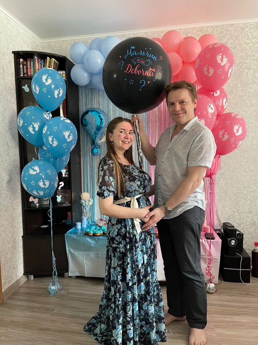 Сегодня нам уже 23 недельки🤗 Такое ощущение что пол нашего малышарика узнали вчера и таких эмоций я никогда не переживала🙃 Слезы счастья и радости🤗 Наш сыночек❤️ Организовывала гендерную вечеринку я сама. Долго над ней думала, продумывала оформление, меню. Я хотела пережить эти волнительные и трогательные эмоции в кругу самых близких и родных людей. В итоге мы отмечали вечеринку дома. За месяц до назначенной даты нам в конвертике написали пол малыша и мы отправились в организацию где делают гендерные шары. Не передать с каким волнением я передавала заветный конвертик, но ещё волнительней было ждать. Все основное оформление я делала сама. Заказала на сайте голубые и розовые шары для гирлянды, дождик, закупили атрибуты нужного цвета. На велком зону закупила сладости в цветовой гамме, а вот кексики с кремом я делала сама🙃 Если честно даже не думала что велком зона будет пользоваться успехом, но гости заценили. Сейчас вспоминаю каждое мгновение и мурашки бегут от пережитых эмоций. Я с