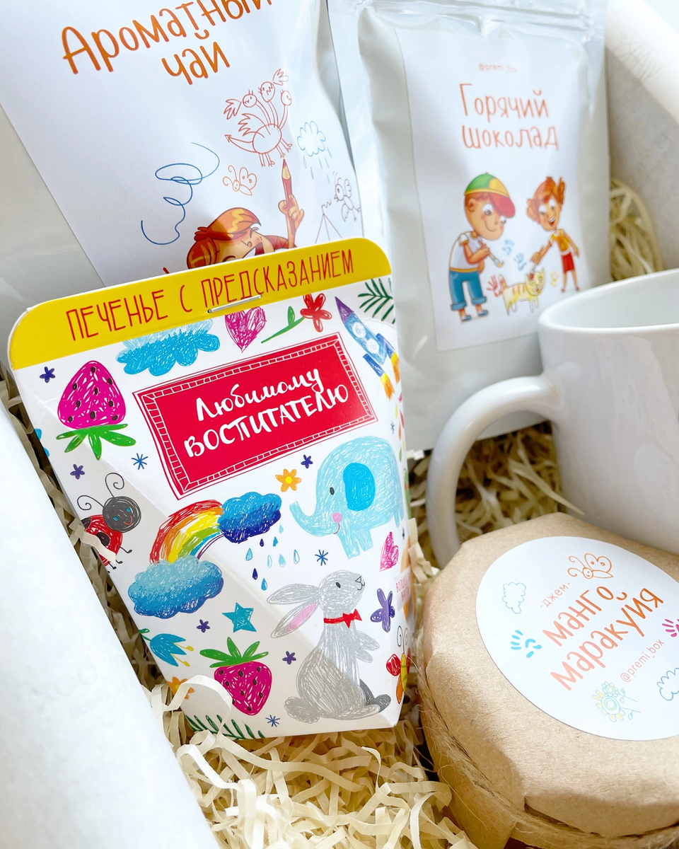 В наличии на сайте Wildberries https://www.wildberries.ru/catalog/36107180/detail.aspx?targetUrl=XS Состав подарочного набора: - Ароматный чай - 50 гр. - Горячий шоколад 50 гр. - Печенье с предсказаниями - Джем "Манго и маракуйя" 125 гр. - Кружка 300 мл. - Открытка - Подарочная коробка #подароквоспитателю #подарокнавыпускной #подарокотчистогосердца #подароквоспитателюнаденьрождения #яркийподароквоспитателю