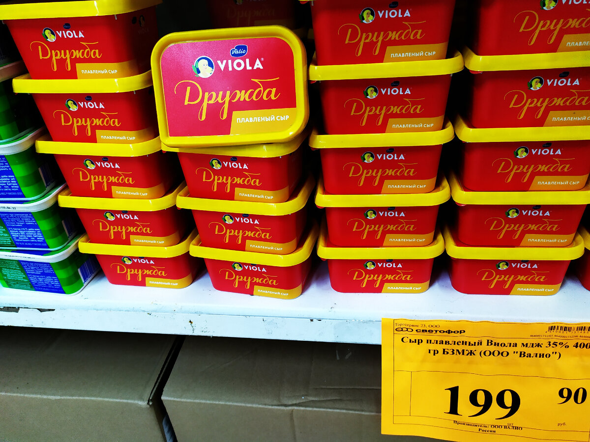 Выбор товаров в "Светофоре" конечно сильно просел за последние пару месяцев и всё самое вкусное, и полезное уже раскупили. Но в полупустой магазин продолжается завоз новинок по новым ценам, где надо быть внимательнее. И долго присматриваясь к товарам, я всё таки вышел с покупками. И так, обзор из "Светофора" в городе Крымск. Отличный плавленный сыр "Дружба" для завтрака, в лотке 400 грамм от VIOLA. Цена 200 рублей. Мороженая крупная мойва, но есть и много мелочи. Цена 164 рубля за 1 кг. Почти месяц у нас в продаже куриные яйца категории С 1. Цена 175 рублей за 30 штук. Появилась вот такая новинка. В ведёрке сыр моцарелла шариками в рассоле, массой 1,1 кг. Цена 336 рублей. Свинина на кости снова подешевела и сегодня цена 192 рубля за 1 кг. В стаканчике шоколадная паста CHOCO DREAMS, массой 350 грамм. Цена 59 рублей. В вакуумной упаковке скумбрия горячего копчения, массой 330 грамм. Цена 94 рубля. Сладкие кукурузные палочки в большой упаковке, массой 400 грамм. Цена 58 рублей. В вакуумно