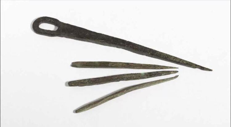 Самые древние швейные иглы, изготовленные из металла, археологи обнаружили в Баварии, в Манчинге. Установлено, что время их изготовления – 3 век до нашей эры. Однако не исключена возможность того, что иглы туда могли просто завезти. Ушко швейной иглы того времени было совершенно не таким, как сейчас (привычная для нас — дырочка для нити), просто тупой конец иглы был загнут, образуя таким образом колечко, через которое и проходила нить.