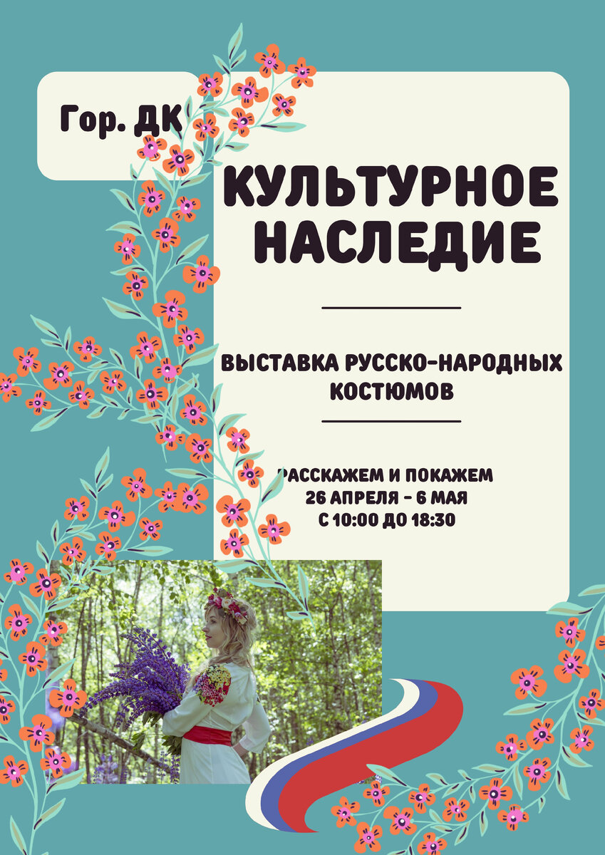 Мищеркина Светлана Евгеньевна, 8 класс, МОУ Лицей №1 Номинация: «Арт-директор». Плакат по теме «Год культурного наследия народов России». Плакат сделан с использованием инфографики и иллюстраций.