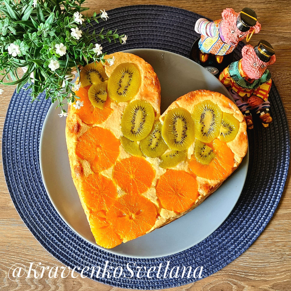 Ингредиенты: творог, яйца, сахар, сметана, манка, соль, мандарины, киви, изюм, ванильный сахар, сливочное масло