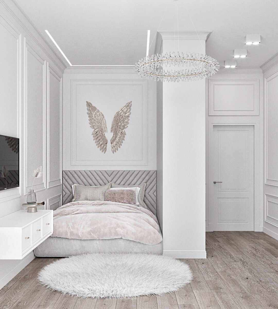 Зачастую, при словах “спальня для девочки” первая ассоциация, которая появляется в голове - это обилие розового цвета. В данном проекте все было немного иначе. Здесь главный цвет - белый. Детская четко разграничена на зоны: при входе расположена гардеробная, а по другую сторону шкафов - уютная ниша с кроватью. Около окна находится большой угловой стол. Особенность этой части комнаты в том, что стол многофункциональный: стоит немного передвинуть стул и можно легко переместиться из-за рабочего пространства с ноутбуком к туалетному столику с зеркалом. Основное пожелание будущей хозяйки комнаты - все должно быть светлым и легким. Родителям же было важно, чтобы спальня была, как говорится, на вырост. Именно поэтому интерьер выполнен в классическом стиле, а о юном возрасте его владелицы говорят лишь те детали, которые в будущем при желании легко будет заменить: кресло и декор. Понравился интерьер? Закажите разработку дизайн-проекта у специалистов Remplaner и мы создадим нечто похожее спец