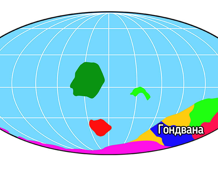 До кембрийского периода существовал суперконтинент Родиния, который затем разделился на Гондвану и более мелкие континенты. Гондвана состояла из тех кусков суши, которые в дальнейшем сформировали континенты Южного полушария, а остальные континенты кембрийского периода сформировали с течением времени части света Северного полушария.