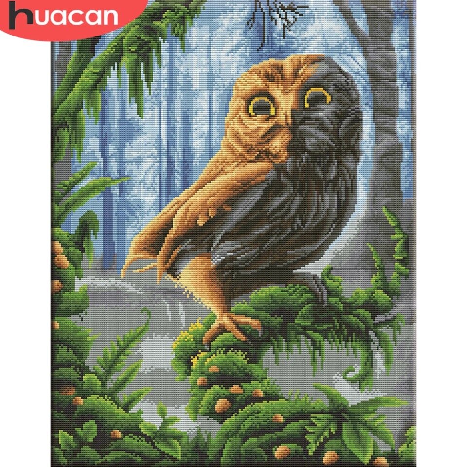 Вышивка крестом картины китайского производителя Huacan «Сова» отчёт 1