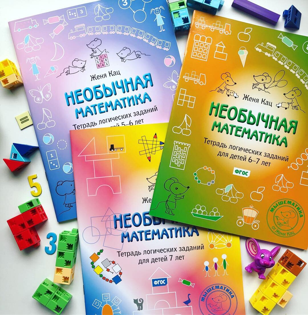 Продолжу показывать отличные пособия для занятий с детьми! Математика-это просто, если это Мышематика🐭 от Жени Кац) Женя Кац - прекраснейший автор гениальных пособий для детей! Я просто в восторге от ее «Необычной математики» Это одни из лучших пособий на логику и интуитивную математику для детей от 4 до 8 лет! Задания составлены отличнейшим образом, выполнены в виде игры и увлекают ребёнка с первой страницы! Сами пособия оформлены не ярко, что настраивает ребенка на нужный лад. Главная цель данных пособий не научить ребёнка считать, а заинтересовать его математикой, а также развить логические навыки: умение выделять признаки, умение находить одинаковые предметы, отыскивать лишний предмет и т.д. Благодаря этим тетрадочкам тренируется память и внимание, развивается мелкая моторика! Пособия включают в себя просто массу разнообразных заданий: задачи на счет, симметрию, поиск подобного, поиск отличий, цепочки последовательностей, арифметические пирамиды, ориентация в пространств