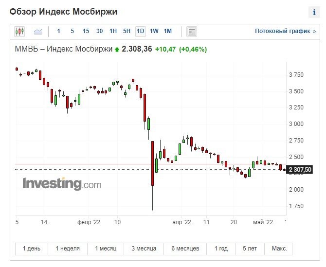 Из-за большого количества праздничных дней в первую половину мая торги на Московской бирже проводились 2 неполных недели по 3 дня: 4-6 и 11-13 мая. Первая неполная неделя была совсем не интересная, никакого особого движения там не было, поэтому описывать ее отдельно было бессмысленно, пишу сразу по итогам двух неполных недель. За эти 6 торговых дней индекс ММВБ снизился на 136 пунктов - 5,6% или более чем на половину предшествующей недели укрепления - с 2444 до 2308. Наиболее динамичным в торговле оказался четверг 12 мая - более половины всего движения за рассматриваемый период (84 пункта) пришлось на этот день. Технически на графике начинает формироваться треугольник с уклоном книзу. Исходя из этого, в дальнейшем рынок может продолжать медленное и плавное снижение с коррекциями вверх, которые с каждым разом будут все меньше. После еще 1-2 таких коррекций может произойти пробой треугольника, в какую сторону - неясно, т.к. это фигура неопределенности, но полагаю, что скорее - вверх. Для