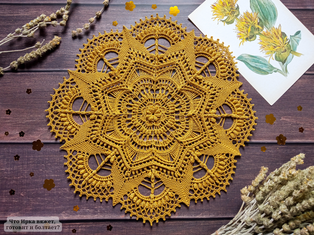 11. Восточная вязаная салфетка "Кэйлаш" в горчичном цвете.