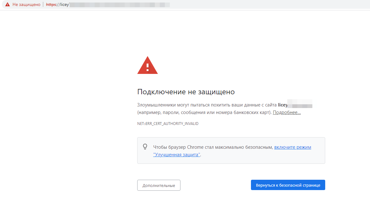 После отказа иностранных сервисов выдавать сертификаты безопасности* для сайтов в домене .ru многие учреждения будут переходить на использование сертификатов выдаваемых Министерством цифрового развития, связи и массовых коммуникаций Российской Федерации. *Сертификат безопасности предназначен для аутентификации сайта в интернете при установлении защищенного соединения. Помогает передавать данные в зашифрованном виде, подтверждать подлинность сайта и его принадлежность владельцу, защищает онлайн-транзакции. Если вы пользуетесь российским браузером Яндекс Браузер или Атом проблем с просмотром сайтов у вас не возникнет. Однако браузеры разработанные за рубежом не признают российский сертификат безопасности и при открытии сата с таким сертификатом например в браузере Google Chrome вы увидите следующее сообщение. Чтобы впредь ни один браузер не игнорировал сертификат Министерства цифрового развития, связи и массовых коммуникаций Российской Федерации можно выполнить несложный алгоритм действи