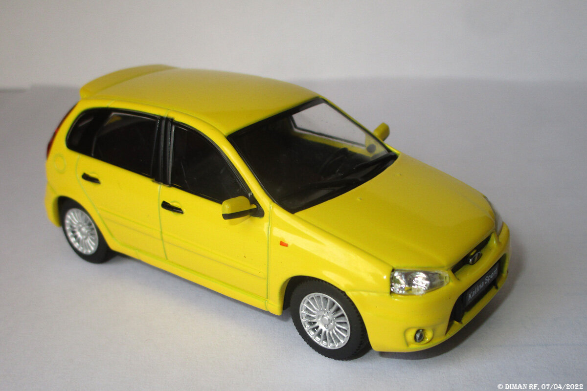 Летом 2010 года произошло яркое событие в автомобильной жизни России. Премьер-министр России (на тот момент) Владимир Путин за рулем Лады-Калины отправился в поездку по трассе «Чита — Хабаровск». Получилась одновременно как популяризация трассы, так и реклама отечественного автомобиля. Модель ВАЗ-11196 Лада Калина Спорт была приобретена мной в 2021 году вместе с журналом «Автолегенды СССР и соцстран» под № 281. Модель вышла в том самом жёлтом окрасе, какой был на машине тогдашнего премьер-министра. Есть небольшая небрежность в исполнении фар. Зато противотуманные фонари отдельными деталями. Модель получилась вполне узнаваемой в сравнении с оригинальным автомобилем. Спортивный обвес воспроизведён довольно успешно. Разработчикам удалось передать характерный профиль Калины. Диски точно такие же, как были на машине Путина. Смотрятся хорошо. Тормозные механизмы выполнены отдельными деталями, хотя за рисунком дисков плохо различимы. Резина простенькая, но хотя бы размер не напрягает. Отлич