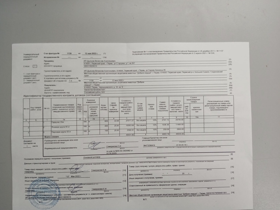 100 кг мяса и 100 кг крупы на входе, 1000 литров каши на выходе. Впечатляет? Очень! Напомним, что в нашем приюте более 400 бездомных собак, за которых мы несем ответственность и ради которых ведем всю эту деятельность. Откуда у приюта есть возможность закупать столько крупы? Ответим честно и прямо — все благодаря вам ❤️ Именно неравнодушные и добрые люди — тот источник помощи, которая дарит нашим постояльцам уверенность в том, что и завтра они будут сыты! Например, сегодня приехала очередная партия крупы: 1300 кг геркулеса, ячки и перловки на общую сумму 44 035₽. В фонде на крупу есть 23 000₽, из которых 9 100₽ перечислили организаторы фестиваля читок ЧИТАЕМ ВМЕСТЕ. Огромное спасибо! И в этот сбор мы рассчитываем, что вы не пройдете мимо и поможете. Необходимая сумма к сбору — 21 035₽. Любую посильную помощь можно перечислить на карту № 5469 4900 1349 4881 Сбербанк, держатель карты — председатель ОЗЖ «Доброе сердце» Марина Николаевна П., привязана к телефону 8-963-878-43-03, с пометко