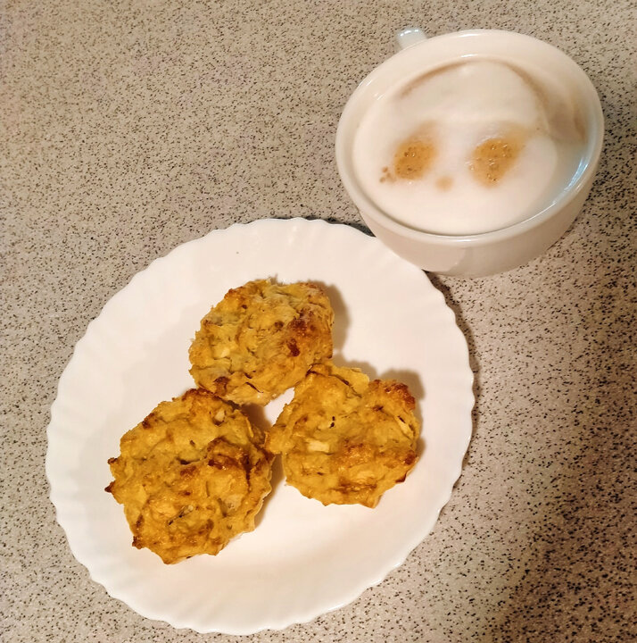 ✓ Ванилин, соль. Творог блендернула :) с яйцом и овсяной мукой. Добавила нарезанное мелким кубиком яблоко, соль и ванилин. Выпекала в смазанных маслом силиконовых формочках. Получилось 6 штучек. А лáтте нам варит кофемашина :) Больше общения и рецептов - в группе "Рецепты для диабетиков" в ВКонтакте! Рецепт на странице Автор рецепта - Марина Максимова