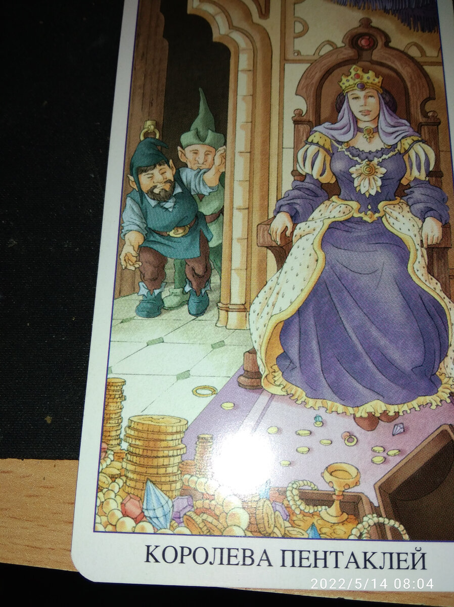 РСегодня выпала Королева Пентаклей, на карте видна властная и обеспеченная женщина сидящая перед грудой золота и драгоценностей,а за дверью за ней подсматривают двое мужчин. Карта недвусмысленно намекает на какую то влиятельную и материальную женщину которая может сыграть сегодня большую роль в решении ваших проблем. Она может помочь вам как морально так и материально. Возможно это будет ваша собственная жена на плечах которой лежит большая ответственность за благополучие и стабильность домашнего быта. Может быть какая то бизнес - вумен проявит серьезный интерес к вашему проекту и окажет вам финансовую поддержку которая по всей видимости окажется не последний. Вероятно что ваше финансовое положение серьезно улучшиться и можно будет организовать собственный проект который в последствии окажется довольно прибыльным. Перед тем как что то делать лучше посоветуйтесь с родными и близкими не пренебрегайте их мнением и рекомендациями ,их советы окажут вам серьезную помощь. Не афишируйте свои финансовые показатели ведь они могут вызвать у кого то скрытую зависть и злобу что может привести к серьезным неприятностям.
