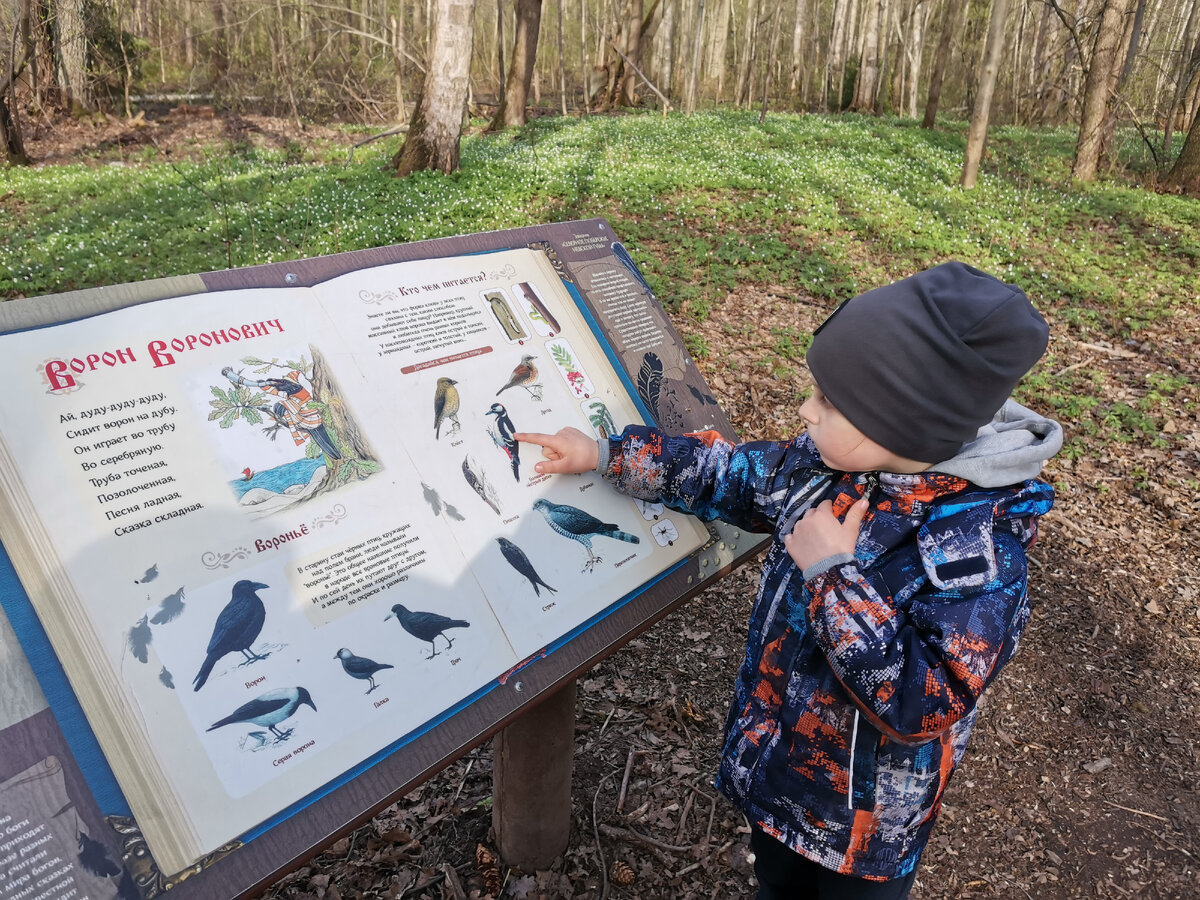 Можно сказать, что это не просто прогулка по эко тропе, но и квест. Так как на каждом стенди оказались задания, которые мы с ребятами с удовольствием проходили. Ещё вам на заметку, Возле кота есть замечательная поляна с поваленым деревом, где можно располажиться на пекник и перекусить.