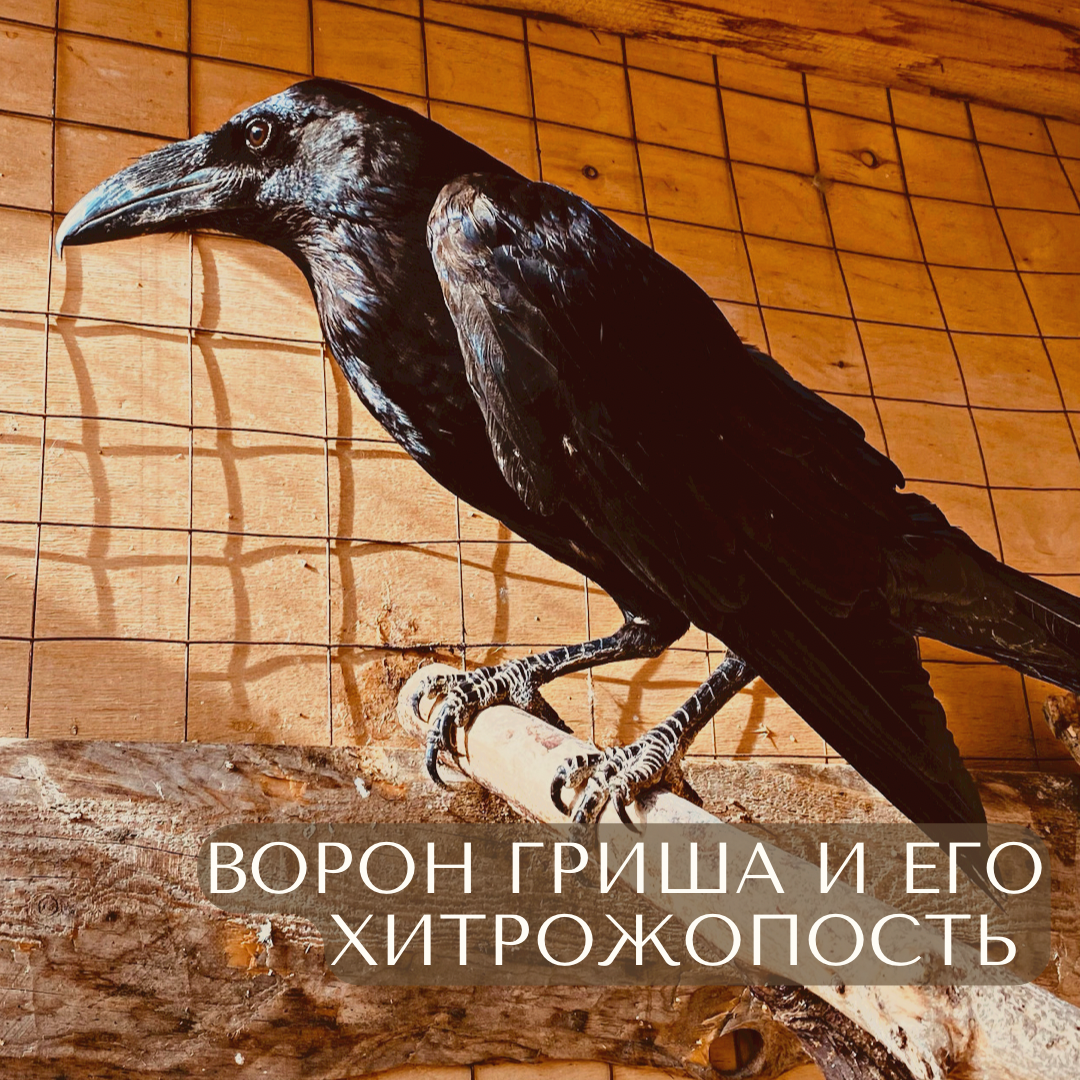О мистических способностях этих пернатых существует много легенд и мифов. Этих черных птиц воспринимают, как предвестников зла. Птица ворон относится к хищным видам пернатых. В наше время у них появился новый имидж. Они впечатляют своим интеллектом и сообразительностью. Интеллектуальные способности самые высокие среди всех видов пернатых. Более того, это птица способна решить логическую задачу, которая не под силу 4-летнему ребенку. Такие выводы были сделаны после многочисленных экспериментов и по утверждению зоопсихологов. Ну а теперь я расскажу про нашего Гришу и его забавы: Всё время, что он живет у нас- Гриша ищет способы открыть вольер и свалить в закат. 💥Пытался расклевать деревянную перекладину, 💥Ждал время кормления и пытался обойти меня и выйти в открытую дверь вольера, 💥Клювом раскручивал саморезы (пока безрезультатно), 💥Пытался напугать меня во время завтрака, чтоб я его выпустила Ещё Гриша настоящий охотник! Он прячет кусочки еды в нижней части вольер