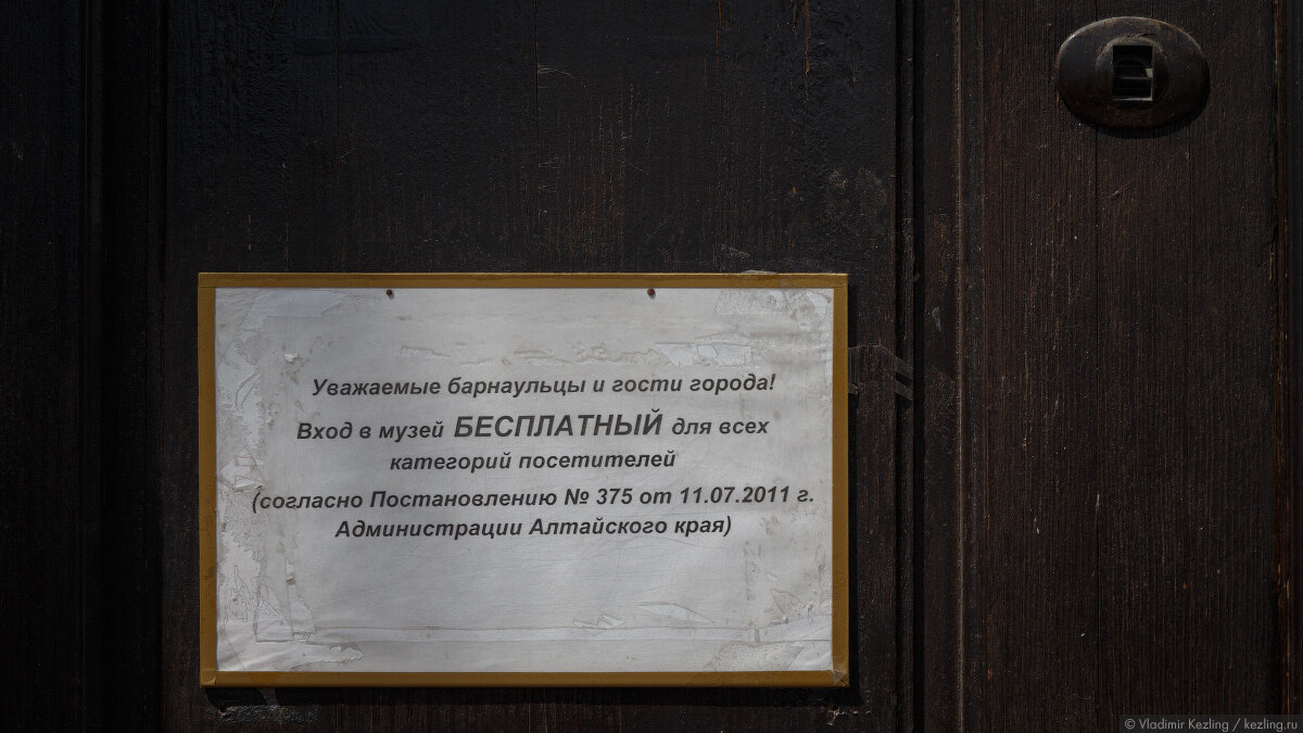 Алтайский краеведческий музей ведёт свою историю с 1823 года. Вход — бесплатный. Правда, чтобы пройти, нужно сначала получить бумажный билет в кассе, а потом показать его контролёру. Зачем нужен этот квест, и почему музей, у которого и так, подозреваю, денег — с гулькин нос, держит двух по сути бесполезных работников — вопрос.