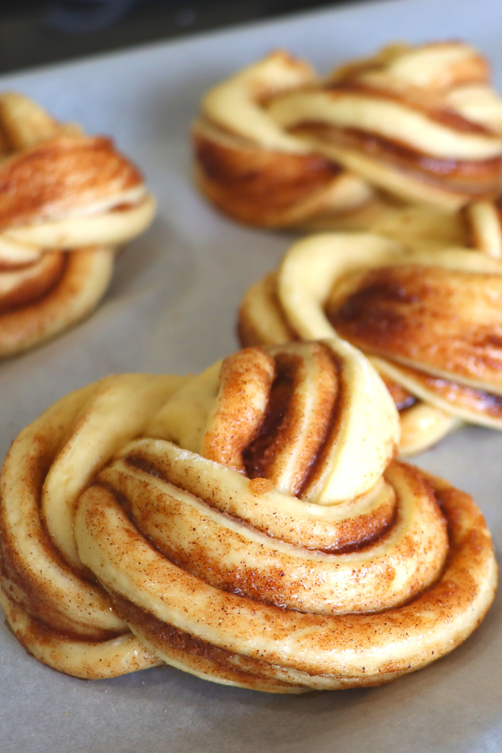 Простой и вкусный рецепт сдобных булочек с корицей. Ингредиенты: молоко, яйцо, дрожжи сухие , сахар , соль , масло сливочное , мука, начинка:, сахар, корица , масло Способ приготовления: 1. Добавить сахар и дрожжи к теплому молоку, перемешать, накрыть полотенцем и оставить на 15 мин. После к опаре добавить яйцо и соль. Перемешать венчиком. Добавить муку грамм 200. Затем добавить мягкое сливочное масло, вмешать в тесто. Добавить оставшуюся муку и месить тесто в течение 15 минут. Оставить поднимать тесто (должно увеличиться вдвое). 2. Начинка : смешать сахар с корицей. Можно добавить орехи. ВИДЕО РЕЦЕПТ ТУТ 3. Разделить тесто на 5 частей. Раскатать в прямоугольник. Смазать маслом. Посыпать начинкой и свернуть в рулет. Защепить его хорошо и разрезать вдоль. Свернуть улиткой. Оставить подниматься на 30 минут. Выпекать при 180 градусах до золотистости.