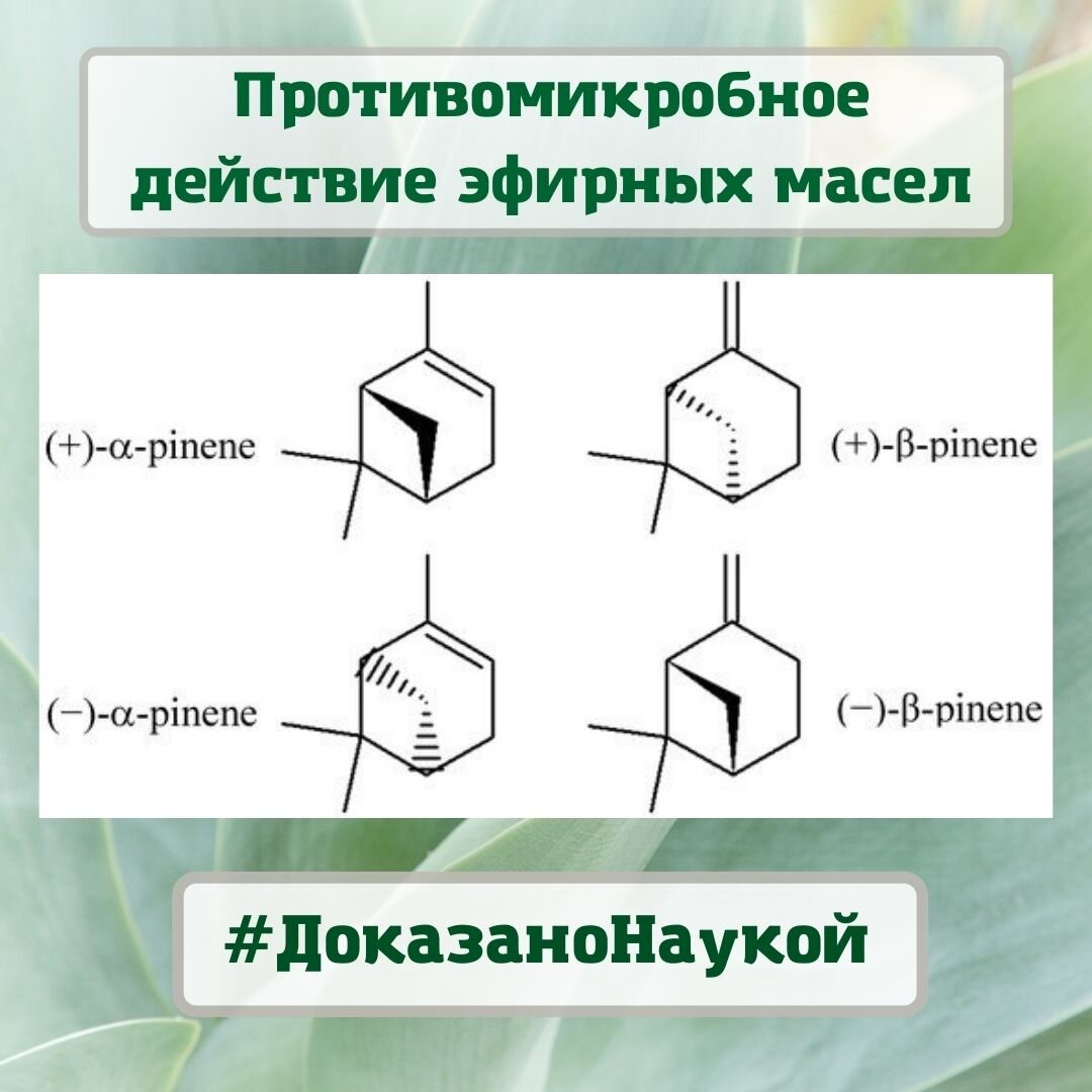 Чтобы не быть голословной, когда я рассказываю про действенность тех или иных эфирных масел, буду периодически писать об интересных исследованиях в этой области. И сегодня про противомикробное действие. Исследование, проведенное в Федеральном Университете Рио-де-Жанейро, Бразилия показало, что такие компоненты эфирных масел как (+)-α-пинен и (+)-β-пинен, входящие в состав многих хвойных эфирных масел, а так же розмарина, лимона, ладана и ряда других эфирных масел, обладают эффективностью против: метициллинрезистентных золотистых стафилококков (MRSA, которые являются ведущими возбудителями госпитальных инфекций); кандиды (Саndida albicans); криптококкоса (Cryptococcus neoformans – грибковая инфекция); rhizopus oryzae (возбудитель заболевания мукормикоз). А если простыми словами, то исследование подтвердило наличие сильного противомикробного действия ряда масел, содержащих этот компонент. Пользуйтесь дарами природы для защиты вашего организма и профилактики. Кому интересны подробности –