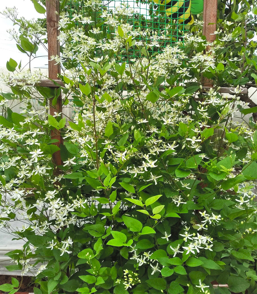 Поделюсь своим опытом как ухаживать и чем подпитать для роста и пышности клематис Маньчжурский. Где посадить на участке и какую почву выбрать. Клематис считается одним из самых популярным и красивых растений, а многие дачники хотят поселить его в своём саду. Существует очень много видов этого растения, но назвать этот цветок простым в уходе нельзя. Поэтому многие садоводы при его разведении сталкиваются с некоторыми сложностями. Хочу поделиться своим любимым сортом клематиса - Маньчжурский. Он подойдёт даже тем дачникам, которые совершенно не готовы заниматься возней с цветами на даче. Это многолетнее, лианообразное растение от 1,5 до 3 м., которое может расти не только одиночным кустом. Он идеален для озеленения веранд, а также в качестве живой изгороди. Клематис Маньчжурский неприхотлив и зимостоек. Все же лучше всего этот вид растёт на ярком солнце. Почва для клематиса подойдёт лёгкая и слабокислая. Он относится к третьей группе обрезки, так как цветение наступает на побегах текущег
