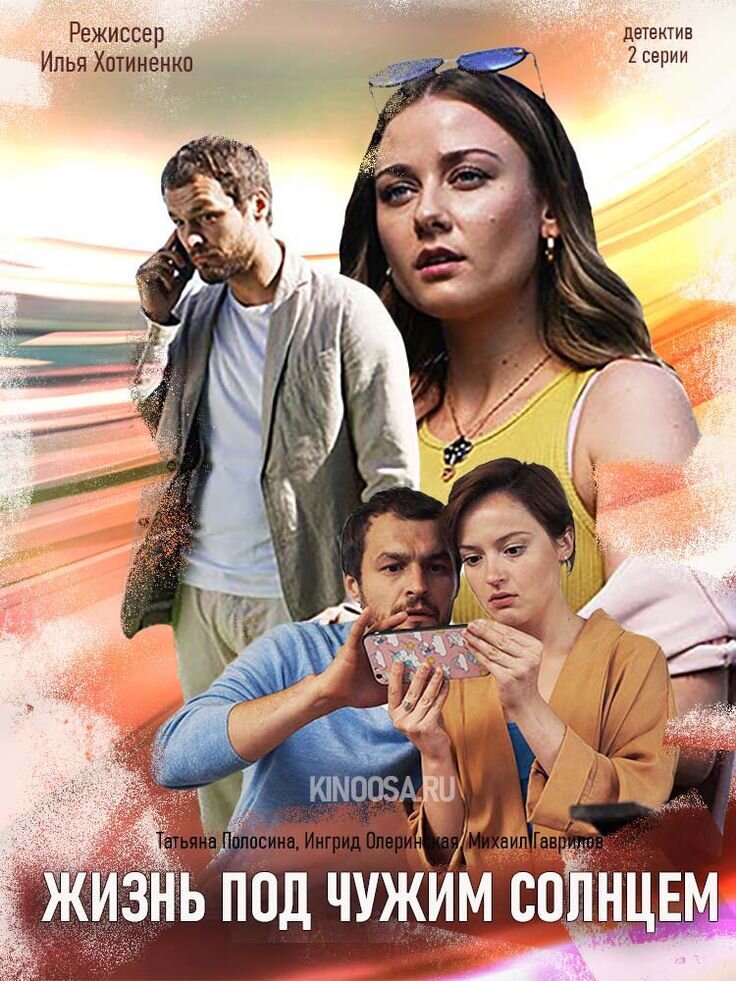 ИНФОРМАЦИЯ О ФИЛЬМЕ: Название ЖИЗНЬ ПОД ЧУЖИМ СОЛНЦЕМ (2020) Режиссер Илья Хотиненко Сценарист Татьяна Шохова Оператор Кирилл Петрушин Композитор Кирилл Нерсесян Художник Виталий Трофимов Продюсер Евгения Вильшанская Кастинг-директор Анна Кеворкова Актеры Татьяна Полосина, Михаил Гаврилов-Третьяков, Андрей Карако, Юлия Подозёрова, Ингрид Олеринская, Антон Момот, Ольга Веникова, Валентина Ельшанская, Гавриил Федотов, Софья Карабулина, Святослава Сагунова, Евгений Потапенко, Тамара Белякова, Андрей Вареницын, Михаил Петров (IX), Геннадий Филиппович Премьера 4 декабря 2020 (ТВЦ) Cерий 2 Жанр детектив, экранизация Описание : По мотивам романа Елены Михалковой. Спонтанная поездка на море в Калининград оборачивается для Даши детективной историей. Один за другим в отеле погибают два человека – аниматор и соседка Даши по комнате. Полиция считает их гибель несчастным случаем. Даша находит доказательства, что это не так, и ведёт своё расследование. Под подозрение попадают отдыхающие: новые