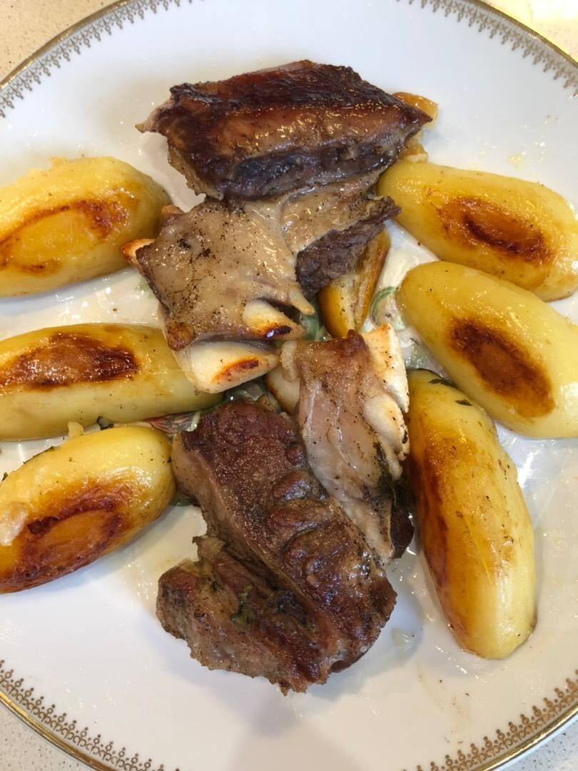 #меню Ингредиенты: мясо говядина (грудинка), картофель, морковь, зубчики чеснока, соль по усмотрению, перец чёрный молотый по усмотрению, сливочного масла, петрушки Способ приготовления: Мясо вымыть, обсушить, посолить, посыпать перцем. Овощи почистить, вымыть, крупно порезать. На противень положить кусочек рукава для запекания. Поочерёдно мясо поместить в рукав, вокруг разложить овощи. Сверху положить зелень петрушки и кусочки сливочного масла. Закрыть концы рукава клемами. Поставить противень в духовку при t-190 град. На 50- 60 минут. Определить готовность мяса. Затем выложить из рукава приготовленное мясо с картофелем на блюдо. Приятного аппетита 😋.