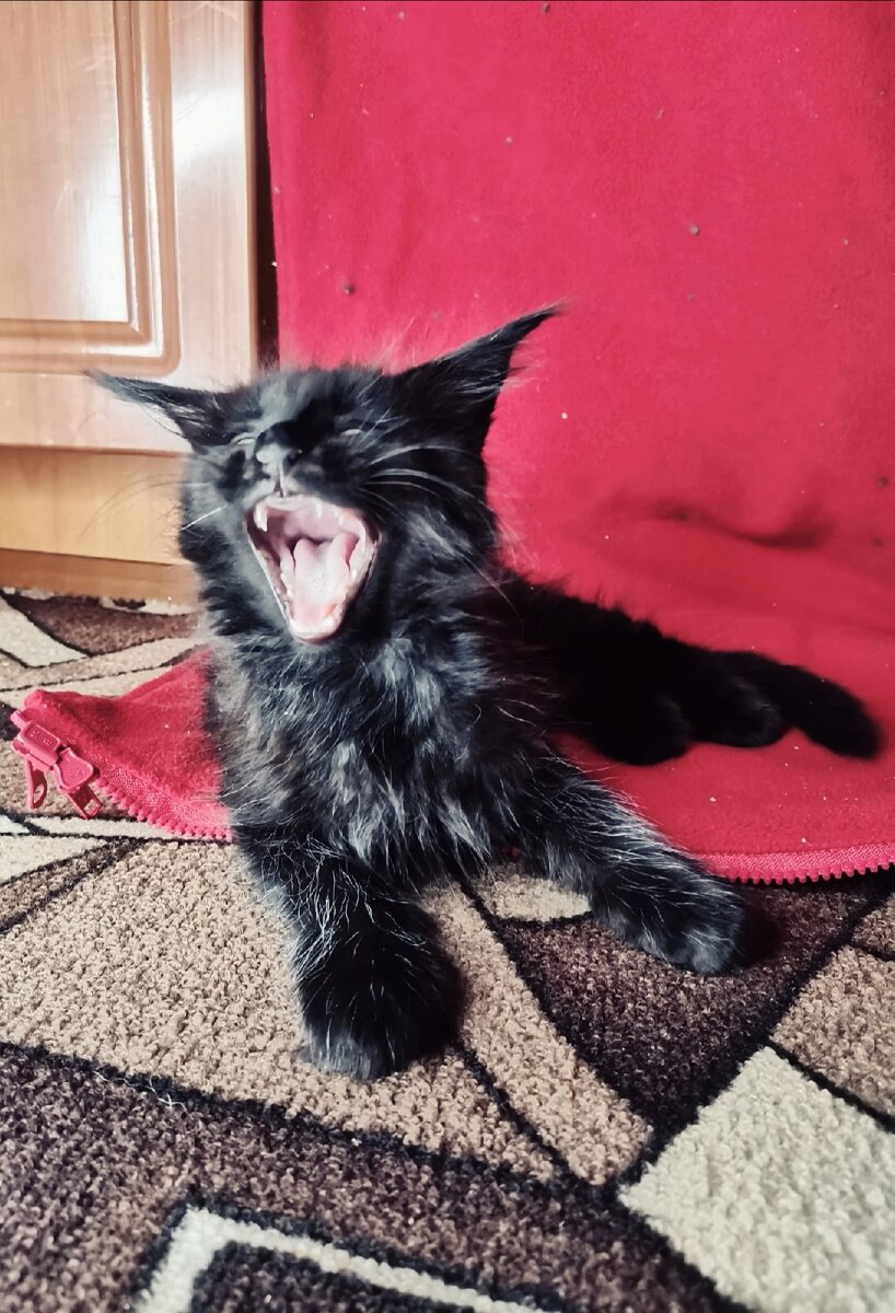 Уход за зубами мейн куна Некоторые владельцы, считают, что уход вовсе необязательный. У взрослого мейн куна 32 постоянных зуба, у них достаточно большие и острые зубки. Уже на 2-ой недели у котенка появляются первые молочные зубки, а к концу 7-го месяца заканчивается смена зубов. Поэтому очень важно следить за состоянием зубов и десен особенно у котят с раннего возраста и даже у взрослых кошек, ведь состояние ротовой полости может рассказать о различных инфекциях, болезнях зубов и даже наличие паразитов. Во время выпадения молочных зубов следует исключить сырое мясо и необработанную пищу. Также важно следить за тем сколько кушает любимец и как часто пережевывает, необходимо давать жесткую пищу, чтобы зубы оставались чистыми и следить за частотой пережевывания пищи. Что бы не допустить возможных осложнений вы можете приобрести зубную щетку, резиновую игрушку или специальную резиновую жвачку. Для того чтобы чистить зубы котику, приучайте котика как можно раньше к чистке зубов и закупите