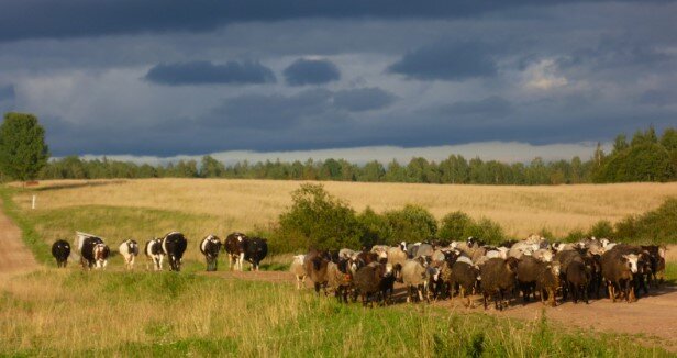 – Смотри в ту сторону, видишь какая экзотика – стадо коров деревенское.