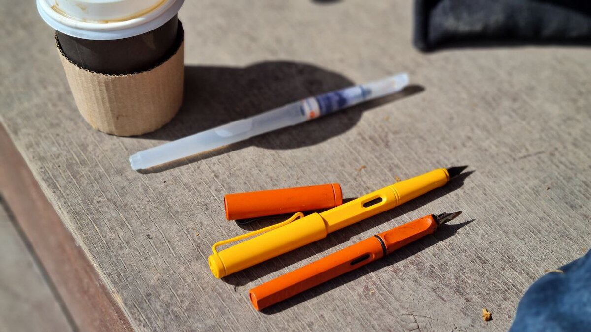 Слушайте, это прям дикий кайф вот так полчаса скетчить и не закрывать ручки, не думать про колпачок, просто бросил открытую, взял другую -все, нафиг, больше никаких линеров, эта пара ручек - идеально 🔥🖊☕️ Ниче не засыхает- сразу пишут отлично И это блин на солнце, Питерском правда 😅