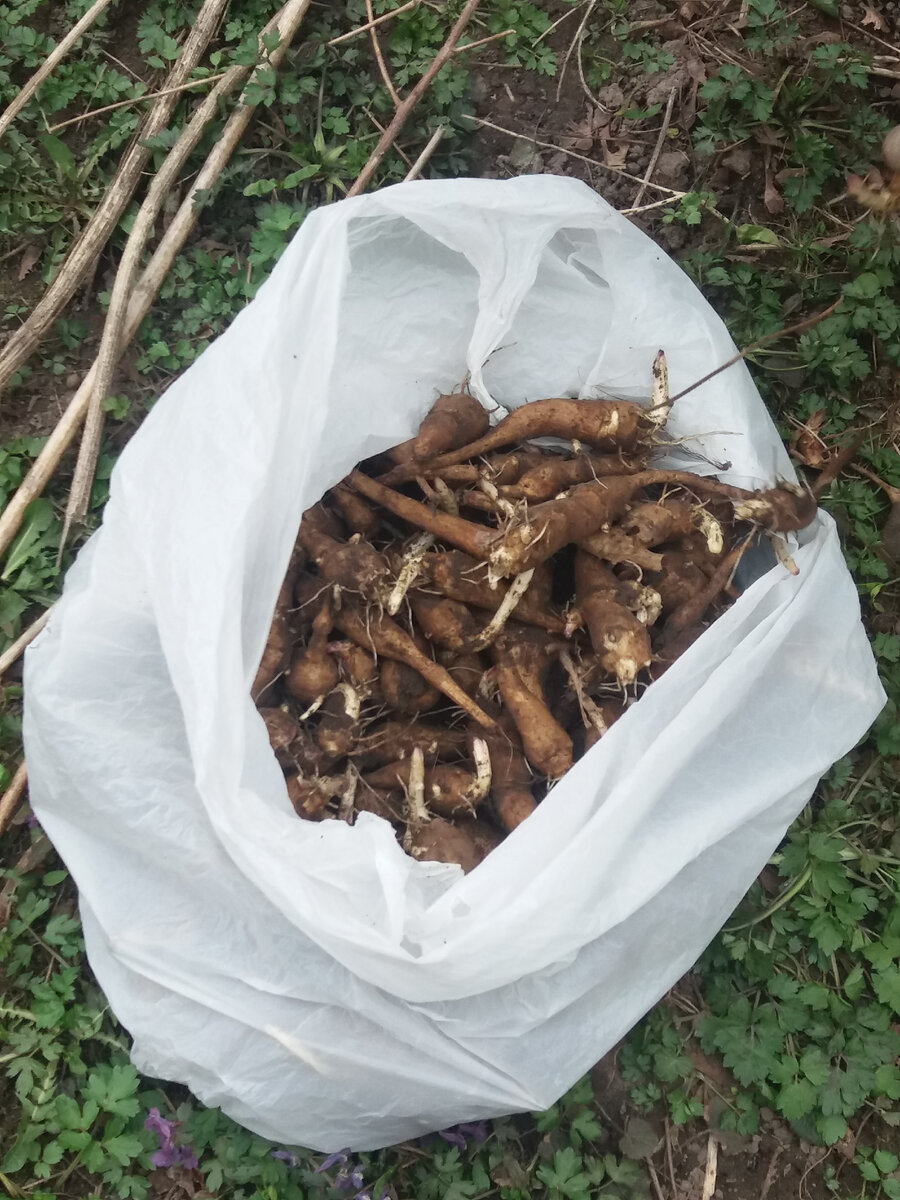 Клубни топинамбура, в отличие от картофеля, высаживают весной, в конце апреля, начале мая. Специалисты считают, что клубни, выкопанные весной, то есть перезимовавшие в почве, имеют лучший вкус по сравнению со вкусом клубней осенней уборки. Половину клубней из мешка мы съели (рецептов приготовления топинамбура- огромное количество, выбирайте на свой вкус и уровень лени), а вторую половину- посадили. Агротехника этого растения не особенно сложная. Топинамбур любит солнечные места, не требователен к почве и влаге. Мощное многолетнее растение высотой 3 м. На одном месте может расти 30-40 лет, но высокий урожай получают первые 3-4 года. Потом его рекомендуют пересадить.