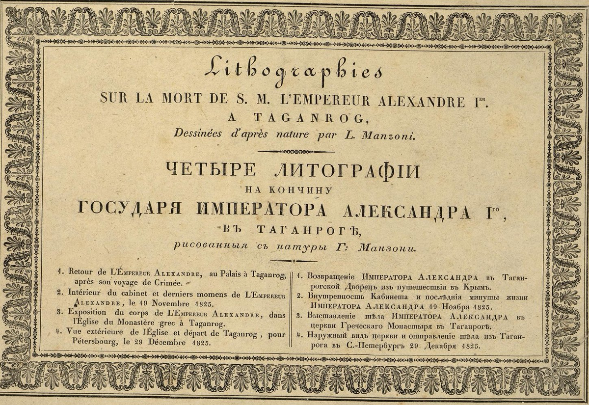 Блоггер делится интересными впечатлениями, фактами, а также сканами архивных документов. Одно из самых любопытных - «Четыре литографии на кончину Государя Императора Александра I-го, в Таганроге»