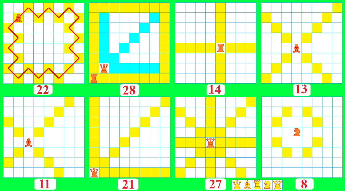 Если считать семёрку одним из наиболее часто упоминаемых чисел Откровения, то неворльно возникает идея посмотреть, а можно ли обнаружить и другие интересные числа на матрице доски? Вот примерная табл