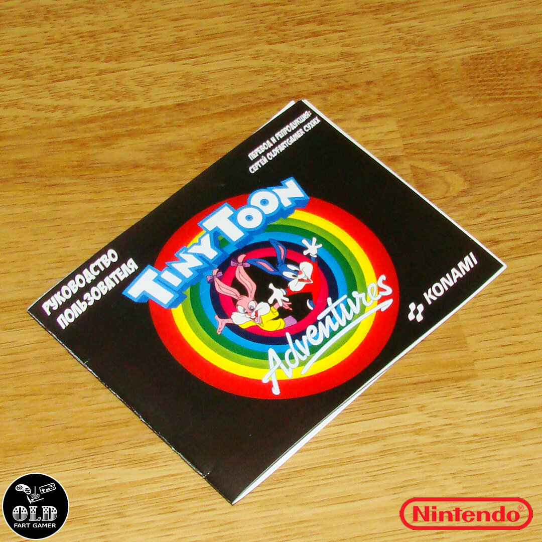 Однако сегодня поделюсь-таки доделанным мануалом к игре Tiny Toon Adventures. Наконец-то у меня будет полный комплект, так как карик с боксом у меня уже почти год как сделаны, а вот руководство всё было лень рисовать. Ага, по сути 80% времени, затраченного на этот мануал, заняло тупое перерисовывание иллюстраций, коих там целая куча. На этот раз ничего особенного я не добавлял своего и ограничился лишь шрифтом заголовков. Намаялся, конечно, с прохождением и снятием скриншотов в необходимых моментах. Но, вроде как, всё получилось. Скачать естественно, можно у меня с Яндекс-Диск.