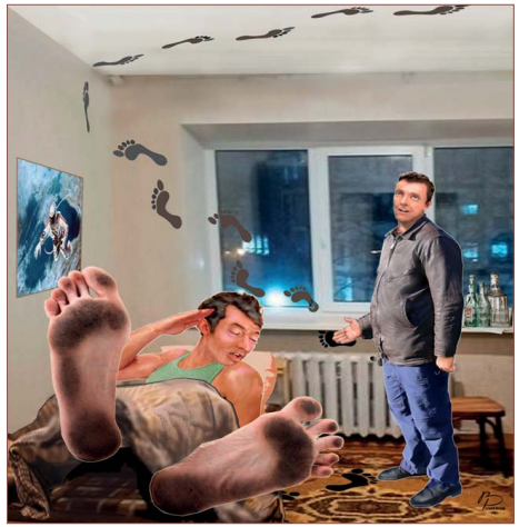 – Да нет, ничего страшного, за исключением того, что бегали по потолку, – вполне серьёзно объяснили ему вчерашние собутыльники. Не поверив вначале наглым россказням, Михаил Андреевич воочию убедился, что следы на стенах и потолке полностью совпадают с его измазанными сажей стопами. Как он ни допытывался о подробностях своих ночных «похождений», никто не рассказал ему правду. – Что ли, с пьянкой кончать?.. – жалобно и обречённо произнёс легенда авиации.