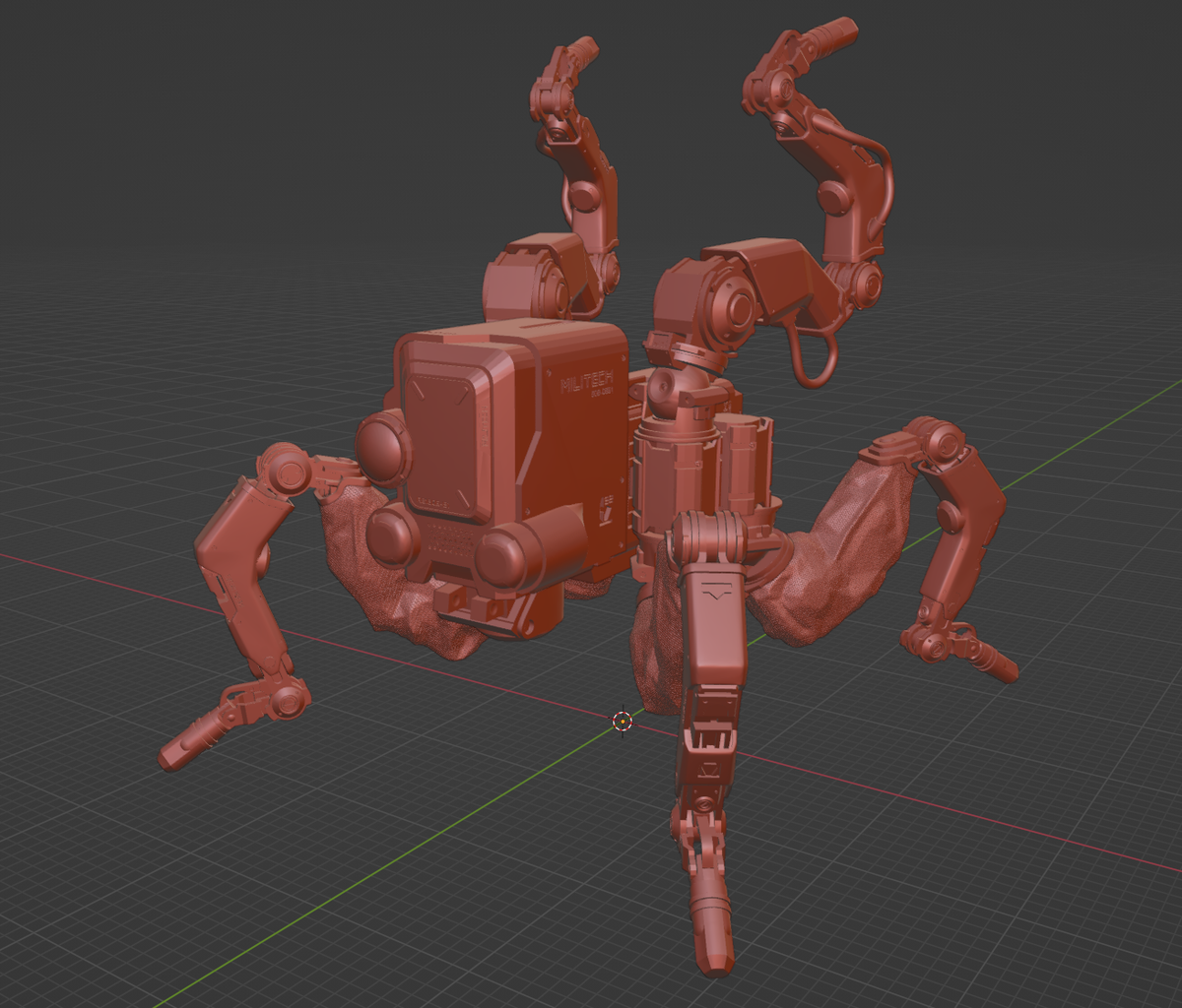 Домоделил наконец "Болта" из CYBERPUNK 2077, а в оригинале - MILITECH SPIDERBOT “FLATHEAD” За основу была взята модель с просторов интернета (автор: Ludovic_Jouault, https://sketchfab.com/3d-models/cyberpunk-2077-militech-robot-c0cdfa71925e4eb89b2d5b4f2220b077), выглядевшая шикарно в текстурах/шейдерах, но совершенно не пригодная к 3d печати. Все мелочи что были "нариcованы" на текстуре перенесены в геометрию модели. Скоро в печать) Модель-основа: #хобби и увлечения #хобби #творчество #cyberpunk #cyberpunk 2077 #blender #3д моделирование #robot