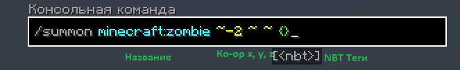 Всем привет! Давайте сразу начнём разбираться в командах! Summon Базовая команда, которая спавнит моба которого мы введём. До: После: NBT-Теги Мы разберём некоторые, потому что их очень и очень много. В основном для создания карт. NoAI:0/1 Имеет ли разум? 0 - да, 1 - нет. Надеюсь тут не надо ещё что-то объяснять. ArmorItems:[] Броня существа, пишется вот так: