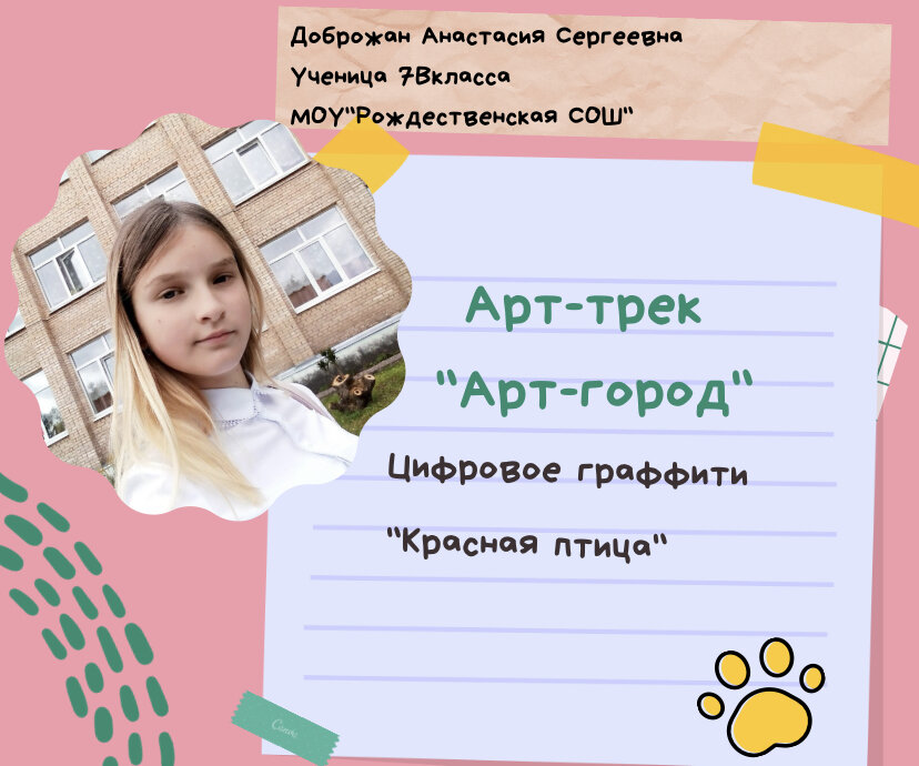 Доброжан Анастасия Сергеевна.7 «В» класс.Номинация "Арт-город" Название: Цифровое граффити «Золотая птица»