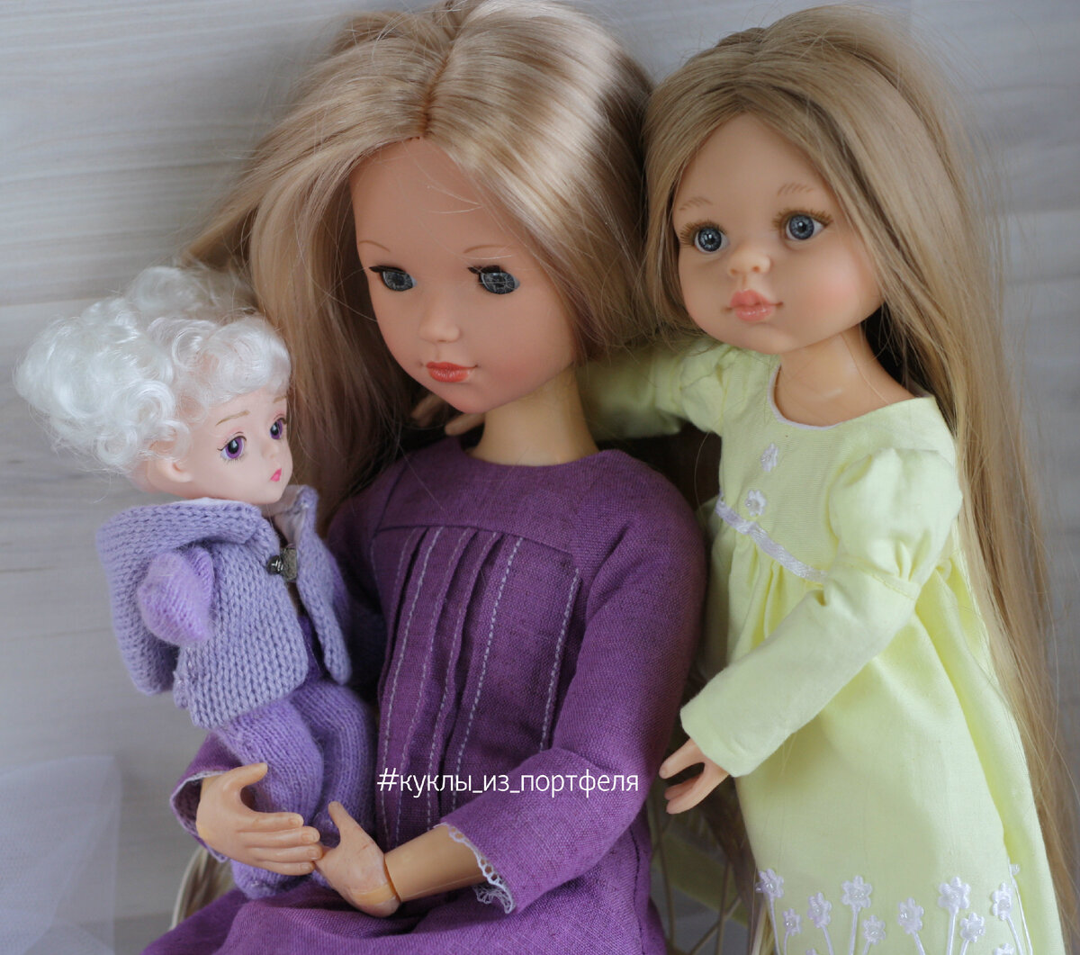 Моя коллекция образов Paola Reina №59 - 7 Образ «Две сестры с парке с племянницей » Рада приветствовать Вас, друзья, на канале ПОРТФЕЛЬ No23. Я продолжаю показывать архивные фотографии, которые будут удалены из моей жизни вместе с Инстаграм совсем скоро. Здесь в ДЗЕН будет главное место размещения архива. Вы уже видели шесть пар образов из коллекции СТАРШАЯ СЕСТРА : №6 Две сестры на утреннике. "Принцесса на горошине"» №5 Сестры на свадьбе. Старшая - невеста №4 Пара сестричек в фисташковом пальто №3 Две сестры в музыкальной школе №2 Две сестры в гостях №1 Две сестры путешествуют Роль племянницы досталась шарнирной китайской куколке - у меня в магазине ещё много таких без одежды вот здесь : Самое трудное для меня было сшить для малышки одежду. Слишком маленький размер - я не привыкла к таким. Куколка продавалась в комплекте с колыбелью, больше не планирую делать такие наборы, но колыбельки под заказ плету с удовольствием. Ссылка на страницу покупки здесь Напоминаю, девочки о том,