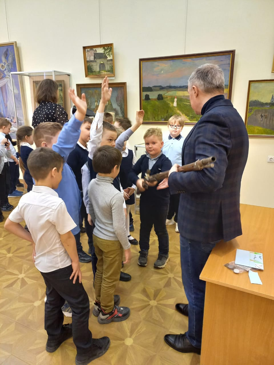 Ребятам рассказали о русской армии периода Отечественной войны 1812 года, о родах войск, как долго служили в армии двести лет назад и какую форму носили. С большим удовольствием мальчишки и девчонки примеряли головной убор русского пехотинца - кивер, но особое внимание привлекало пехотное ружье. Теперь они знают, что весит такое ружье около пяти килограммов, а дальность стрельбы около ста шагов... А знаете ли вы, сколько операций нужно выполнить, чтобы совершить повторный выстрел из пехотного ружья того времени? (Ответы можно оставить в комментариях под постом).