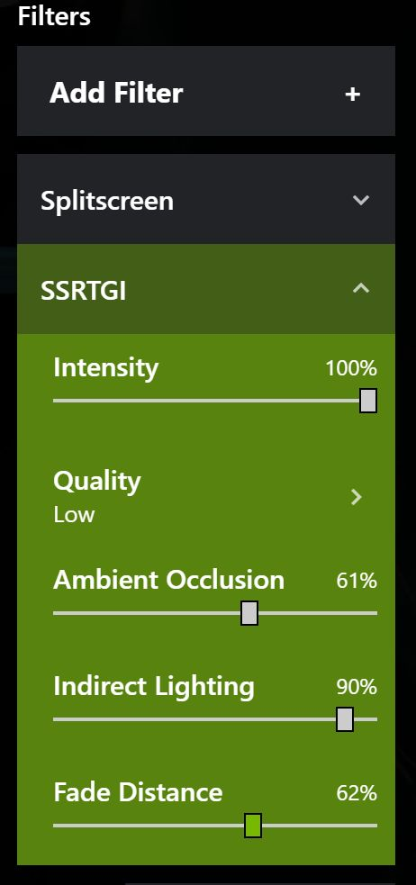 NVIDIA решила упростить этот процесс и вместе с Pascal Gilcher добавила шейдер SSRTGI в свою галерею фильтров Freestyle. Это определенно удобнее, проще и быстрее, чем версия для ReShade. Но NVIDIA Freestyle работает не во всех играх, а SSRTGI доступен в еще меньшем списке игр. ReShade будет работать с почти чем угодно, даже с очень старыми играми, а SSRTGI-шейдер для него можно настроить очень тонко, там даже есть небольшие инструменты для дебагинга. У SSRTGI всего 4 опции, два переключателя и один выбор глубины трассировки лучей.