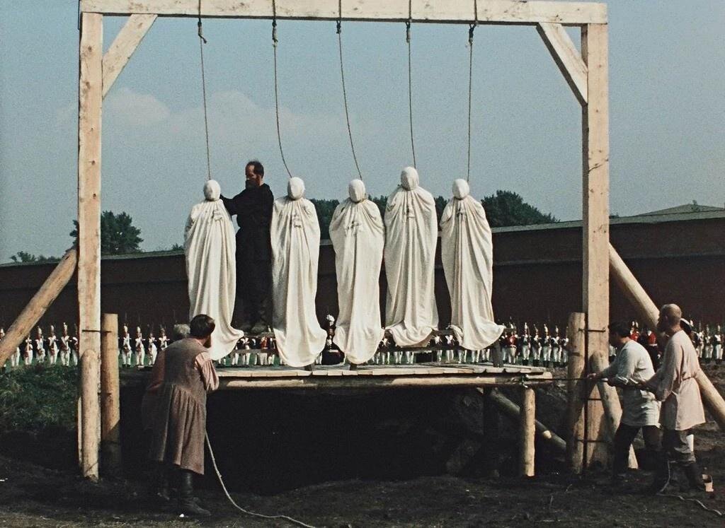 Наспех сколоченный помост для казни проверяли на прочность при помощи восьмипудовых мешков с песком, выполнявших роль повешенных.