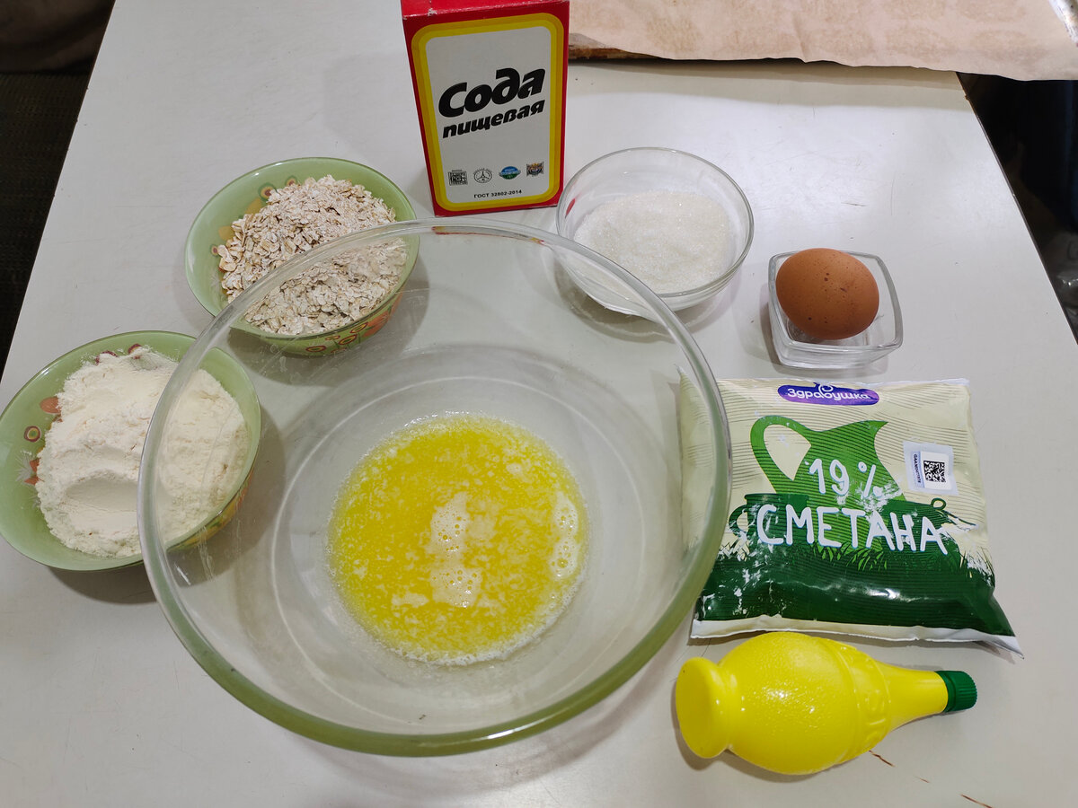 Давненько мой глаз цеплялся за скромные остатки овсянки в контейнере. Ну чего вот она стоит? Надо что-нибудь с ней придумать. Просто кашу мы не особо любим, всякие модные овсяно-блины - тем более. В общем, решила печенье испечь. Ингредиенты такие: Масло растопить, остудить. Смешать с сахаром, яйцом и сметаной. Всыпать овсянку, перемешать. Добавить соду+уксус. Досыпать муку, чтобы получилось довольно плотное тесто. И можно добавить что-то еще: изюм, шоколад, ягоды. У меня была замороженная клюква. Тесто распределить на противне, застеленном пергаментом. У меня пергамент силиконизированный, маслом не смазываю. Если у вас обычный - смажьте. Ножом наметить границы печенек. Ставим в духовку на 200С на 25-30 минут. Печется быстро, не провороньте момент)) Вот такое получилось печенье - в меру хрустящее и в то же время мягкое. Подсчитала примерно бюджет - выходит около 90-100 рублей (правда, клюкву не знаю, как посчитать, у меня бесплатная). Одна печенька - 5 рублей. Это много или мало, интере
